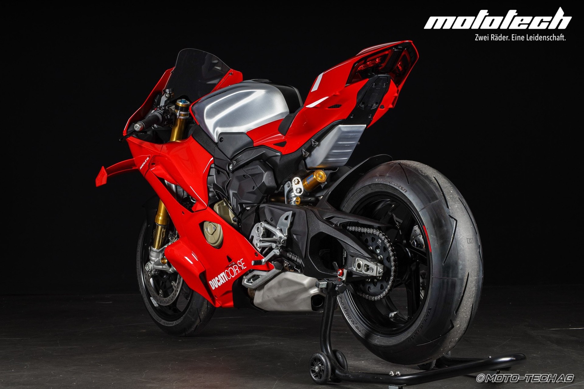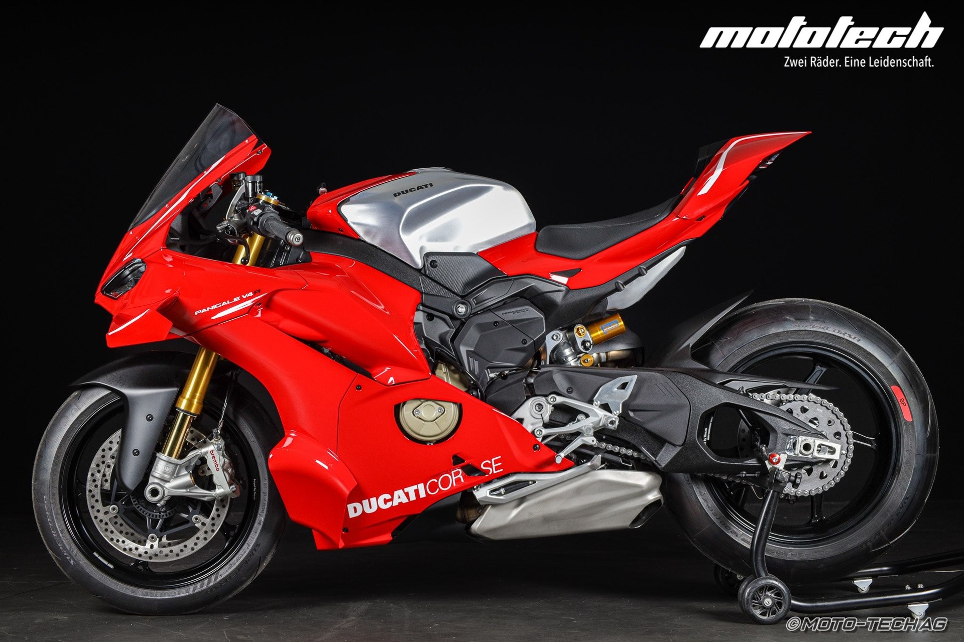 Die neueste Evolution einer legendären Saga, die die Ducati Racing-DNA verkörpert. Entwickelt im Einklang mit dem Reglement der WorldSBK-Meisterschaft, repräsentiert die neue Panigale V4 R die Erfolge, die Ducati in MotoGP und Superbike errungen hat. Angetrieben vom 998 cm3 Desmosedici-Stradale ist sie das erste strassenzugelassene Motorrad, das mit Corner Sidepods sowie dem Ducati Racing Gearbox-System mit Ducati Neutral Lock (DNL) ausgestattet ist.