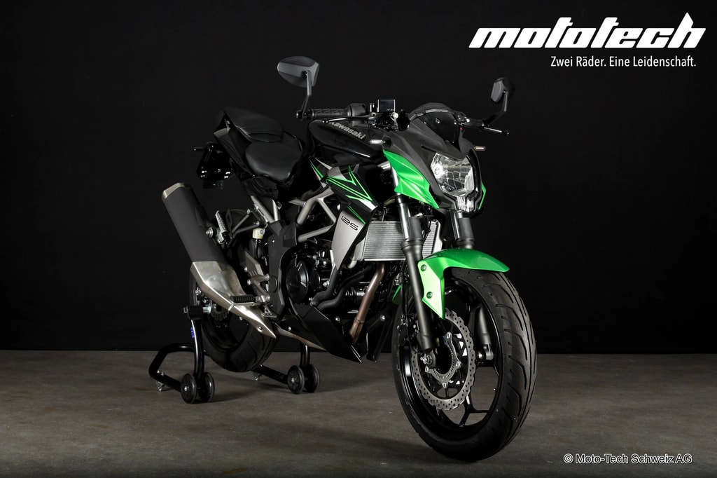 Die legendäre Z Familie hat ein neues Mitglied – die Z125. Basierend auf der Sugomi Philosophie von Kawasaki hat die Z125 einen kompromisslosen Naked Bike Look, für welchen die Z Modelle berühmt sind. Der sichtbare Gitterrohrrahmen und der minimalistische Z Look begeistern zusammen mit dem 15 PS starken Motor und dem leichten Handling. Willkommen in der Z Familie!