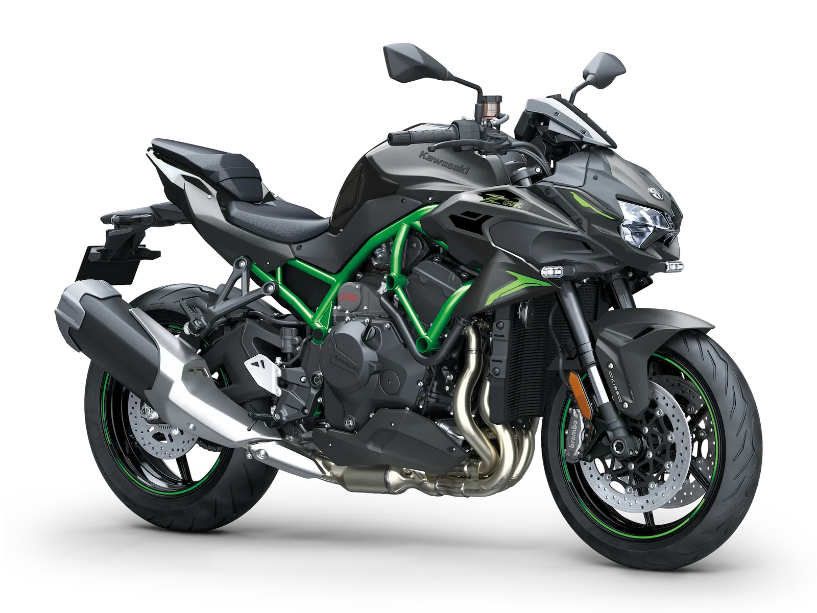Mit radial montierten Brembo-M4.32-Monoblock-Bremssätteln und 290-mm-Doppelscheibenbremsen vorne bietet die Z H2 eine starke und präzise Bremsleistung.