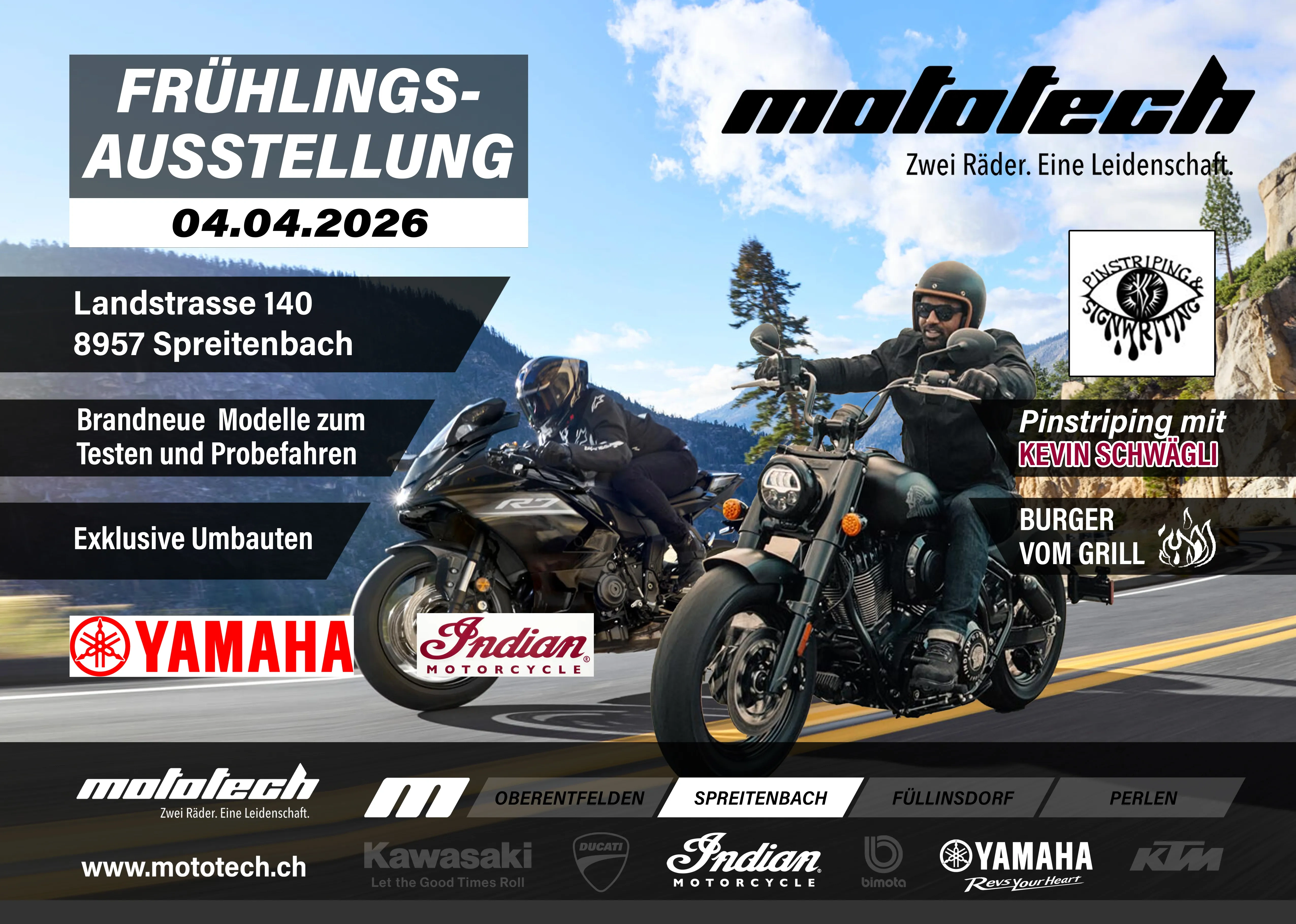 Endlich ist es soweit! Am 4. April 2026 eröffnen wir die Motorradsaison bei Mototech in Spreitenbach.